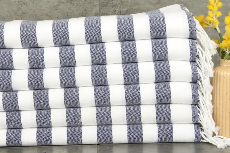 The product is characterized by its use of 100% organic Turkish cotton, ensuring superior absorbency and softness. The towels weigh 120 grams and measure 20x44 inches (50x110 centimeters), with potential weaving tolerances of 1-2.5 centimeters. Each piece undergoes a pre-wash process to enhance absorbency, with care instructions recommending 30-40°C and low cycles for washing.