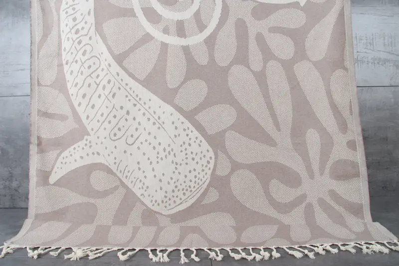 Characterized by its superior fiber composition, this beach towel is crafted from 100% organic Turkish cotton. This ensures high absorbency and durability, with towels becoming more absorbent with each wash. Dimensioned at 40x71 inches (100x180 centimeters) and weighing 400 grams, the product maintains consistent quality with hand-weaving tolerances of 1-2.5 cm.