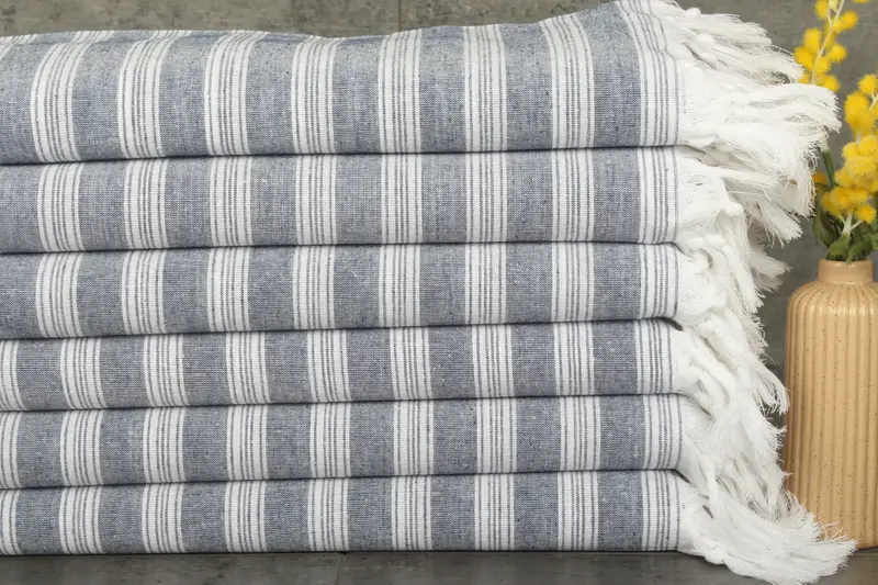 Turkish cotton towels and blankets are characterized by their high quality and functionality, ensuring comfort and durability for various uses. Predominantly made from 100% organic Turkish cotton, these towels exhibit superior absorbency, becoming increasingly efficient with each wash. These towels are meticulously woven, resulting in a weight of 210 grams and a standard size of 40x71 inches (100x180 centimeters) with a tolerance of 1-2.5 cm.