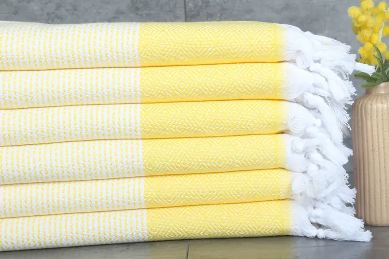 Our Turkish towels are characterized by their organic cotton composition, ensuring enhanced absorbency and softness. Each towel features a weight of 360 grams, dimensions of 40x71 inches or 100x180 centimeters, with hand-weaving tolerances of 1-2.5 centimeters. Resulting in a perfect blend of quality and durability.