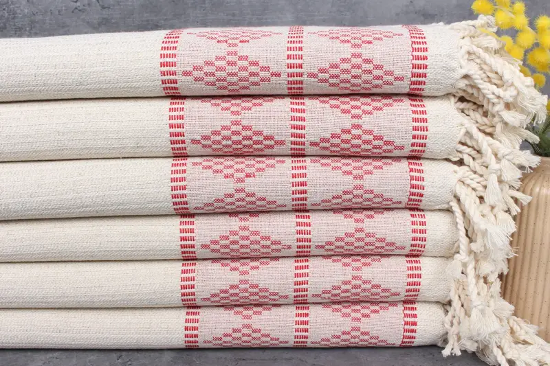 Turkish towels and blankets are characterized by their high-quality organic cotton composition, providing excellent absorbency. The towels, sized 36x71 inches (90x180 centimeters) and weighing 480 grams, are made from 100% organic Turkish cotton. Their natural dyeing process ensures vibrant colors.