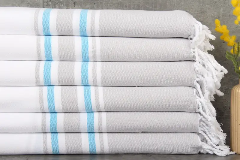 Constructed from 100% organic Turkish cotton, these towels ensure a high level of absorbency and softness, characterized by natural dyeing processes. Their dimensions are 40x71 inches or 100x180 centimeters, weighing 304 grams, with hand-weaving tolerances of 1-2.5 centimeters.