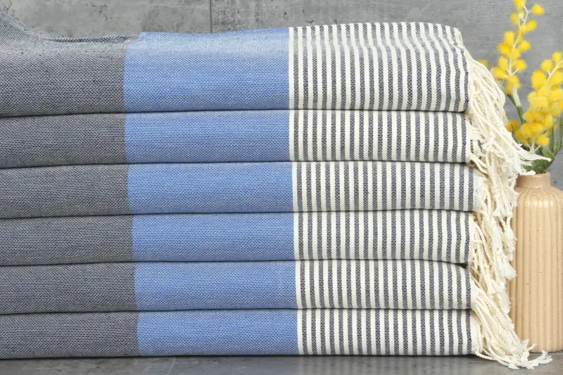 Turkish towels are characterized by their composition of 100% organic Turkish cotton, ensuring a natural and environmentally friendly product. These towels exhibit a weight of 298 grams, with dimensions of 40x69 inches or 100x174 centimeters, allowing for versatile usage in various settings. Resulting in enhanced absorbency with each wash, they are pre-shrunk and hand-woven with tolerances of 1-2.5 cm.