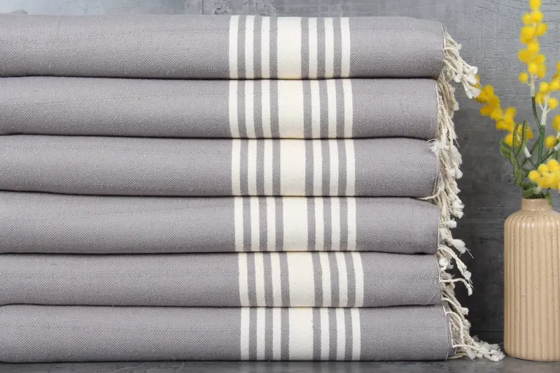 These towels are crafted from 100% organic Turkish cotton, ensuring superior quality and sustainability. Resulting in lightweight yet highly absorbent towels, the fiber composition promotes better water retention with each wash. Characterized by dimensions of 36x63 inches or 90x160 centimeters, each piece weighs approximately 340 grams.