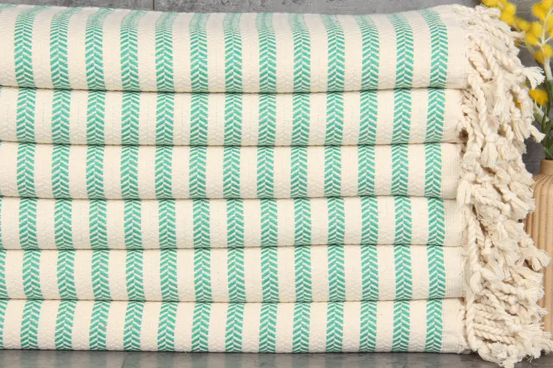 100% organic Turkish cotton ensures superior absorbency, creating towels that become increasingly soft and absorbent with each wash. Characterized by meticulous hand-weaving, these towels measure 40x71 inches or 100x180 centimeters with a weight of 440 grams. Tolerances in hand-weaving measurements range from 1-2.5 centimeters.
