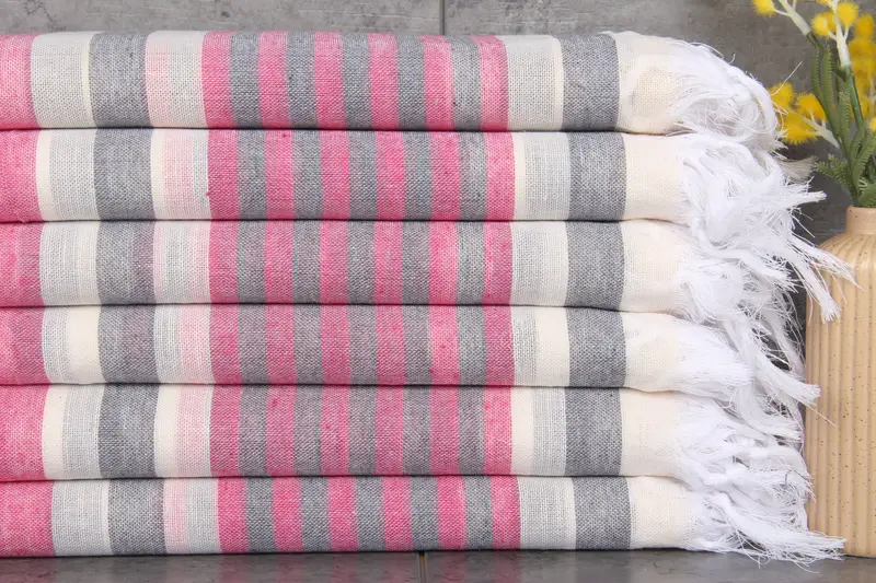 The Monogrammed Beach Towel is characterized by its high-quality 100% organic Turkish cotton composition, providing superior absorbency and durability. This fiber selection ensures a soft texture and increased water retention capacity, resulting in enhanced usability across diverse applications. The towels measure 40x67 inches (100x170 centimeters) and weigh 175 grams, ensuring they are lightweight yet robust. Hand-woven, these towels have a tolerance of 1-2.5cm in size due to the artisanal production process.
