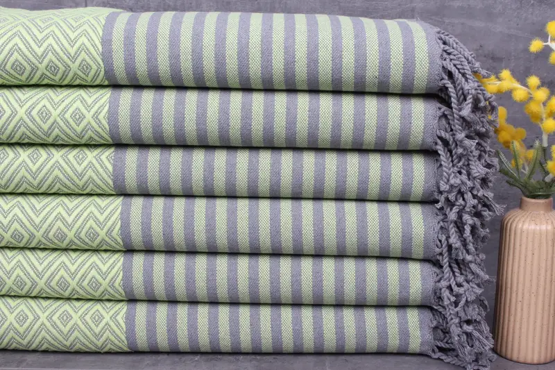 Characterized by superior absorbency, these towels are crafted from 100% organic Turkish cotton, ensuring durability and a softer texture. Resulting in a weight of 430 grams, the dimensions are 40x71 inches or 100x180 centimeters. Hand-woven with tolerances within 1-2.5 cm, these towels exhibit a pre-shrunk status.