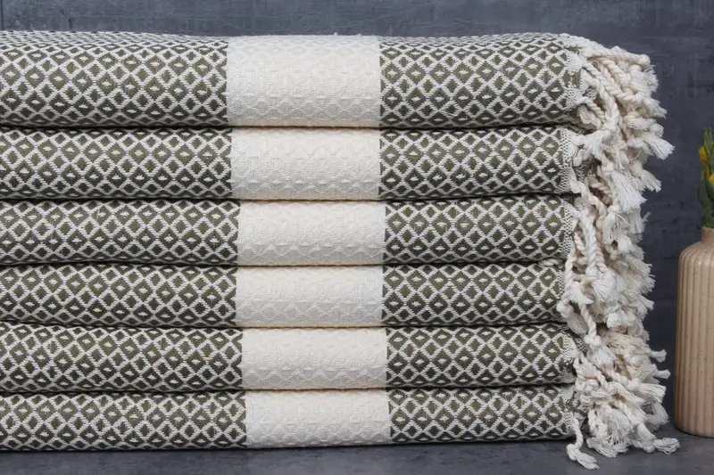 These Turkish towels are characterized by their 100% organic Turkish cotton composition, ensuring superior absorbency. Each towel measures 40x71 inches or 100x180 centimeters, with a weight of 400 grams, and allows for hand-weaving tolerances of 1-2.5 cm. The towels are pre-shrunk and require separate washing for the first 2-3 times at 30-40 degrees Celsius. Custom embroidery can be completed within two days for expedited orders. Shipping is provided by DHL Express and FedEx, with delivery times ranging from 2 to 6 days depending on the region....