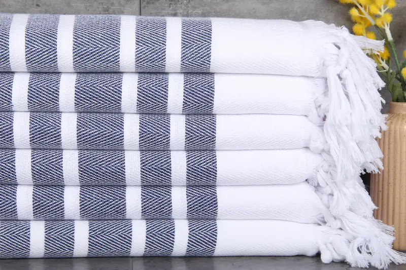 Dimensions are precisely 36x67 inches (90x170 centimeters) for organic cotton towels, and their weight is 380 grams. Each piece is manufactured through traditional hand-weaving techniques, allowing for minor variations.