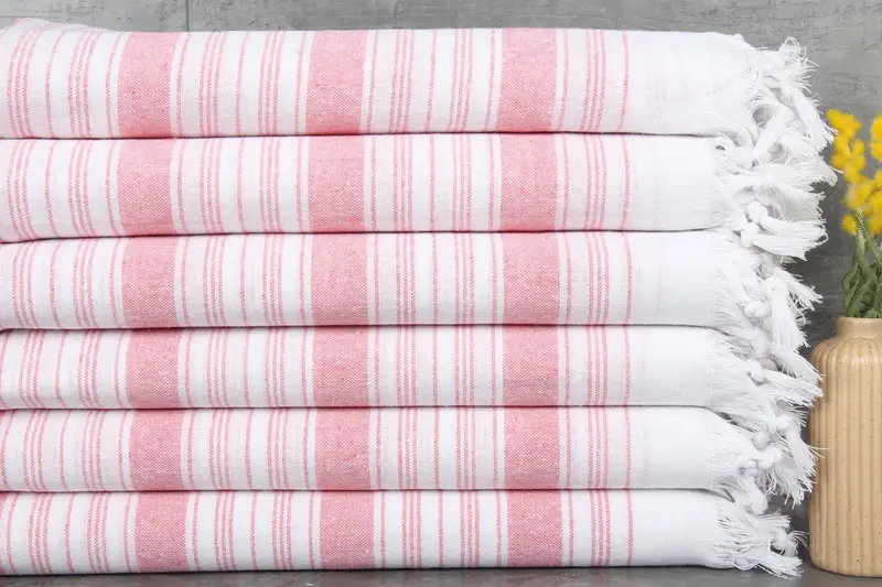 Organic cotton towels, weighing 260 grams, exhibit a consistent fiber composition that enhances their absorbency. These towels, sized at 32x67 inches or 80x170 centimeters, are characterized by a natural dye process, ensuring color uniformity. Tolerances in hand-weaving contribute to slight variations, typically 1-2.5cm.