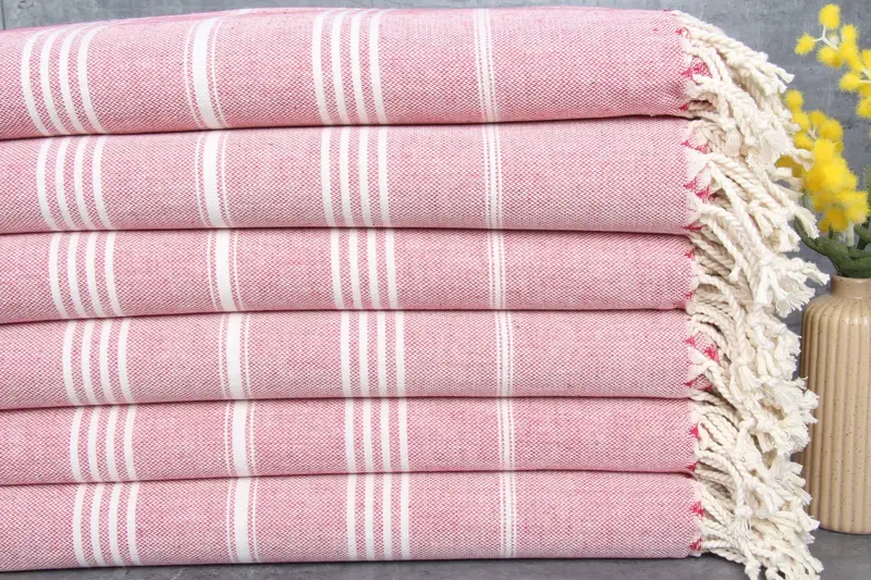 Organic cotton is the foundation of these Turkish towels, ensuring a natural and eco-friendly product line. Characterized by their high absorbency, these towels become more absorbent with each wash, providing exceptional durability. Weighing 300 grams and measuring 40x71 inches or 100x180 centimeters, these towels exhibit a hand-weaving tolerance of 1-2.5 cm.