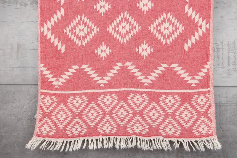 Turkish towels are characterized by their use of 100% organic Turkish cotton, ensuring high-quality fiber composition and superior absorbency. Resulting in a towel that absorbs more water with each wash, these towels measure 18x40 inches or 45x100 centimeters, weighing 120 grams. The hand-weaving process allows for a tolerance of 1-2.5cm, ensuring consistent quality.