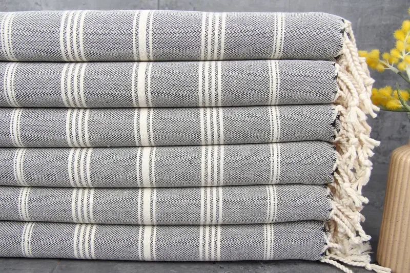 Characterized by 100% organic Turkish cotton fibers, ensuring high durability and exceptional absorbency. These towels and blankets are handwoven, resulting in dimensions of 24x36 inches or 60x90 centimeters. Each piece weighs 120 grams, with tolerances of 1-2.5cm due to hand-weaving.