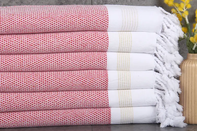 Turkish towels, noted for their superior absorbency, are produced from 100% organic Turkish cotton, ensuring a high-quality material. These towels, weighing 390 grams and measuring 40x71 inches (100x180 centimeters), are characterized by their natural dyes and meticulous hand-weaving process, resulting in a slight tolerance of 1-2.5 cm.