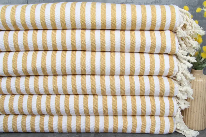 Turkish towels are characterized by their use of 100% organic Turkish cotton, ensuring natural dye absorption and enhanced absorbency with each wash. These towels, weighing 298 grams, come in a size of 40x76 inches (100x192 centimeters) and feature hand-weaving tolerances of 1-2.5 cm. The pre-washed organic cotton material results in a softer texture and increased water absorption after each use.