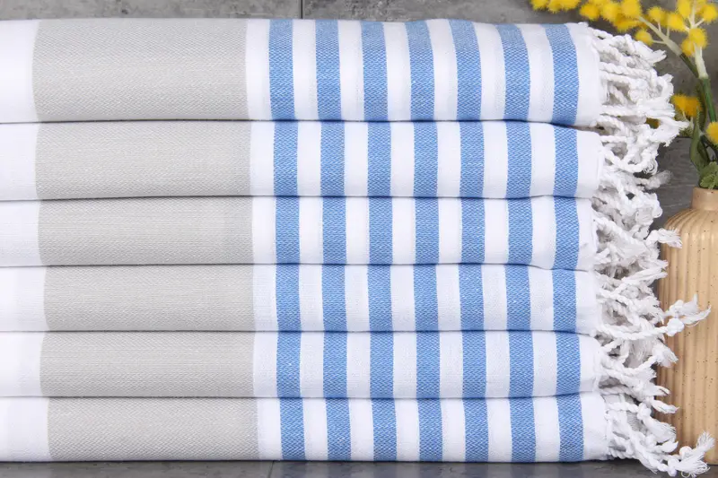 The Monogrammed Beach Towel is characterized by its 100% organic Turkish cotton composition, ensuring superior absorbency and durability. Each towel measures 40x71 inches or 100x180 centimeters, with a weight of 280 grams, and exhibits hand-weaving tolerances of 1-2.5 cm. The customization process allows for monogrammed embroidery, and all towels are pre-shrunk to maintain shape and size.