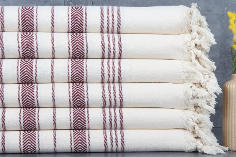 Turkish towels are characterized by their 100% organic Turkish cotton composition, ensuring natural dye color retention and enhanced absorbency. Resulting in improved water absorption after each wash, these towels weigh 340 grams with a size of 40x71 inches (100x180 centimeters). Hand-weaving tolerances allow for variations of up to 1-2.5cm.