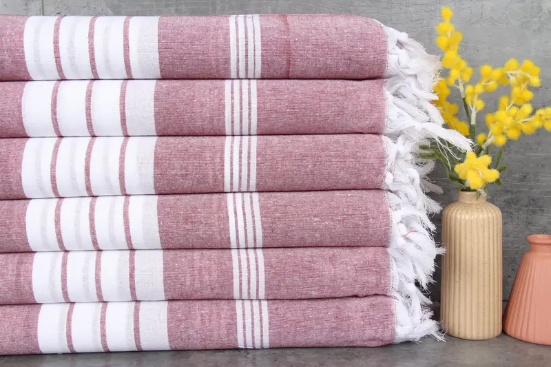 Composed of 100% organic Turkish cotton, these towels ensure superior absorbency characterized by natural dyeing processes. Each towel measures 40x70 inches (100x180 centimeters) with a GSM of 120 grams per square meter. Hand-weaving allows for tolerances of up to 1-2.5 centimeters in dimensions.