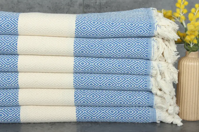 Turkish towels, characterized by their superior quality, are crafted from 100% organic Turkish cotton with natural dyeing, ensuring enhanced absorbency and durability. These towels are meticulously woven, resulting in a weight of 420 grams and a size of 40x71 inches or 100x180 centimeters. The hand-weaving process allows for tolerances of 1-2.5 cm in dimensions.