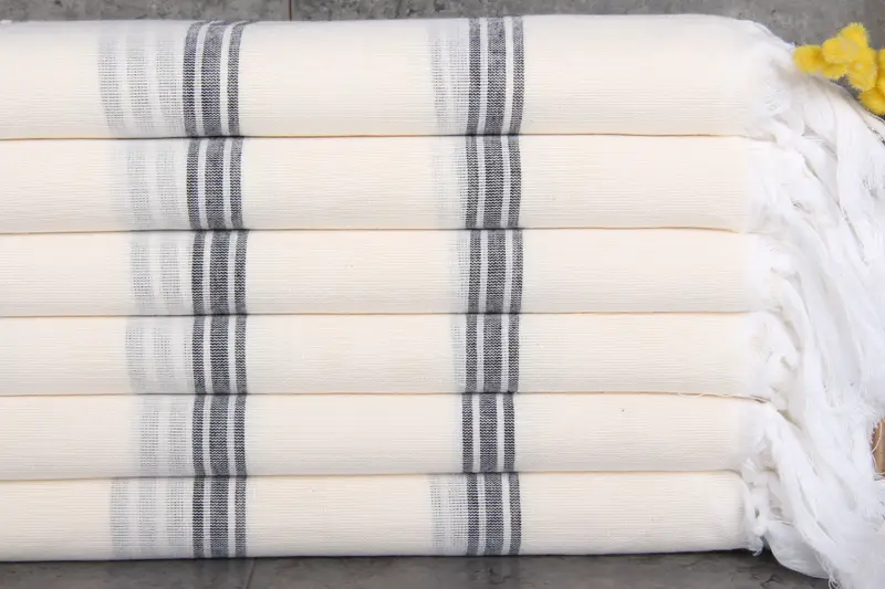 These towels are crafted from 100% organic Turkish cotton, ensuring a naturally dyed finish that enhances their durability and softness. Characterized by exceptional absorbency, these towels absorb more water with each wash, resulting in longer-lasting quality. Each towel measures 71x40 inches (180x100 cm) and weighs 310 grams, with hand-weaving tolerances of 1-2.5 cm.