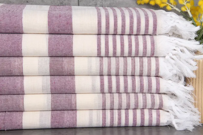 Turkish towels are made from 100% organic Turkish cotton, ensuring superior softness and stylish appearance. Characterized by their natural dyeing process, these towels exhibit high absorbency with each wash, resulting in improved water absorption. The towels, measuring 36x67 inches (90x170 centimeters) and weighing 200 grams, comply with tolerances of 1-2.5 cm due to hand-weaving.