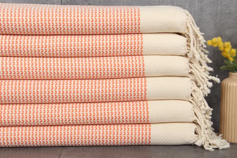 The product is comprised of 100% organic Turkish cotton, ensuring both softness and durability. Characterized by a natural fiber composition, the towels absorb water efficiently, becoming more absorbent after each wash. Weighing 140 grams, each towel measures 20x40 inches or 50x100 centimeters with a tolerance of 1-2.5 cm due to hand-weaving.