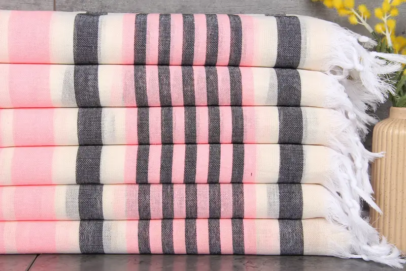 These Turkish towels, blankets, and hand towels are composed of 100% organic Turkish cotton, ensuring high absorbency and durability. Characterized by a dimension of 40x67 inches or 100x170 centimeters, these towels weigh 175 grams and are crafted with a tolerance of 1-2.5 centimeters. Turkish towels are pre-shrunk, and hand-weaving techniques are applied to enhance their texture.