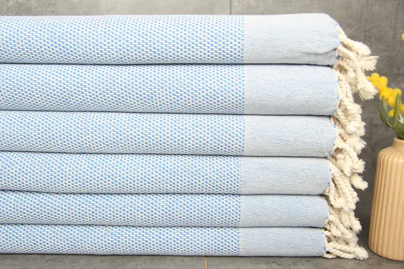Ensuring superior quality, the towels are crafted from 100% organic Turkish cotton, renowned for its soft texture and natural dye finish. Characterized by high absorbency, each piece enhances its moisture-wicking properties with each wash, with a weight of 140 grams per square meter. The dimensions of these towels are 24x44 inches, translating to 60x110 centimeters, with hand-weaving tolerances of up to 2.5 cm.