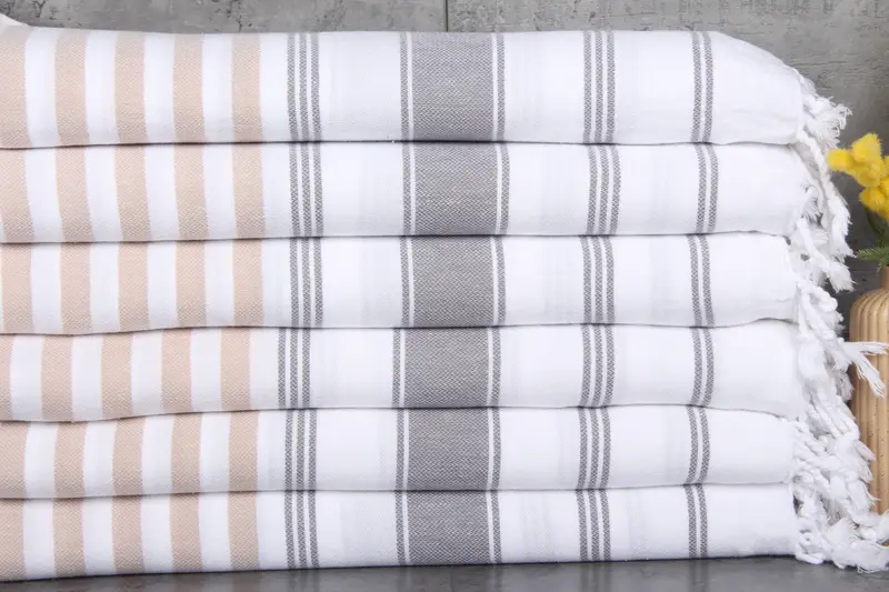 Turkish towels are characterized by their use of 100% organic Turkish cotton, naturally dyed, ensuring a robust and eco-friendly product. Weighing 300 grams and sized at 40x71 inches (100x180 centimeters), these towels exhibit excellent absorbency, becoming more so with each wash due to their cotton composition. Tolerances for hand-weaving may result in variations of 1-2.5 cm.