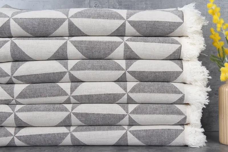 Characterized by the use of 100% organic Turkish cotton, the towels are naturally dyed, ensuring superior absorbency and softness. Each towel weighs 350 grams, measures 40x71 inches (100x180 centimeters), and exhibits slight hand-weaving variations of 1-2.5 cm. Resulting in a unique and stylish product, these towels are pre-shrunk to maintain their size after washing.