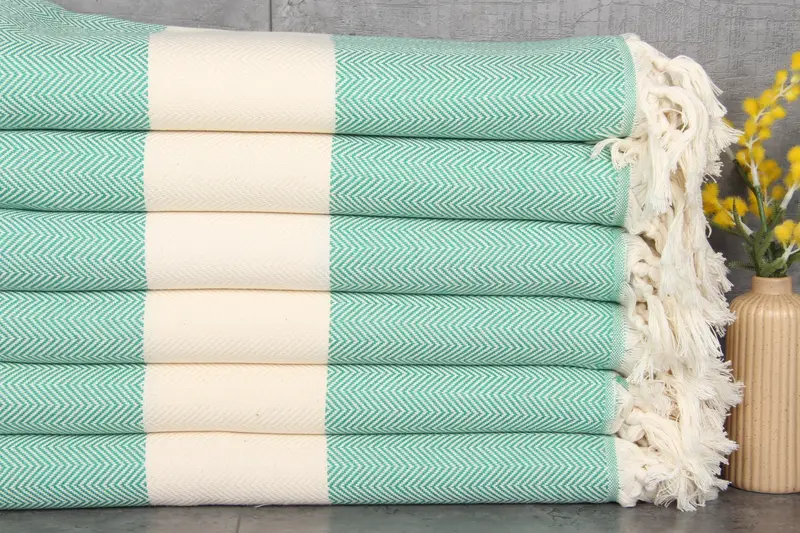 Turkish towels, characterized by their superior absorbency and durability, are meticulously woven from 100% organic Turkish cotton, dyed with natural colors. Ensuring optimal texture and softness, these towels have an inherent weight of 430 grams, with a standardized size of 40x71 inches or 100x180 centimeters. Each piece can vary slightly by up to 2.5 cm due to hand-weaving techniques.