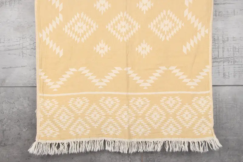 Turkish towels ensure superior absorbency characterized by their 100% organic Turkish cotton composition. Resulting in a weight of 120 grams and dimensions of 18x40 inches (45x100 centimeters), these towels offer high tolerance for hand-weaving variations, typically within 1-2.5 cm. Production processes are designed to pre-shrink the towels, enhancing their longevity.