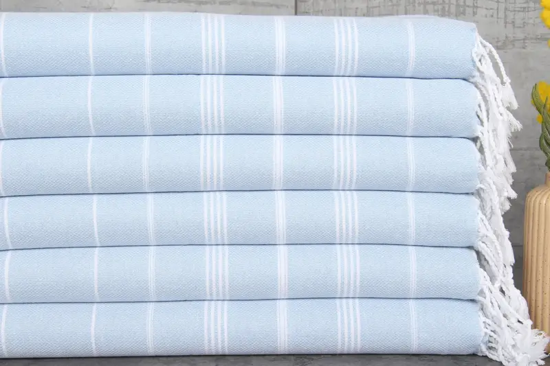 Ensuring a premium fiber composition, these towels are made from 100% organic Turkish cotton, characterized by their natural dyeing process. Resulting in superior absorbency, the towels are designed in standard dimensions of 18x38 inches (45x95 centimeters) with a weight of 80 grams. Hand-weaving tolerances allow for variations of 1-2.5 centimeters in the final product.