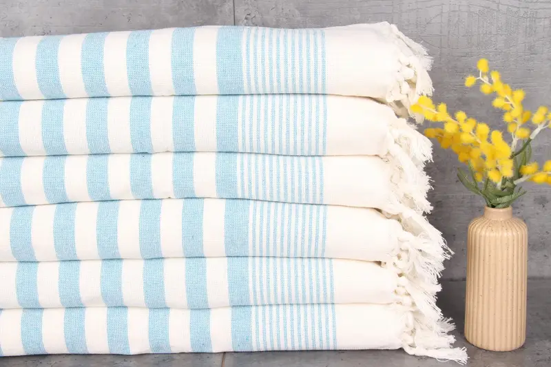 Turkish cotton ensures high-quality fiber composition, characterized by natural dyeing and 100% organic Turkish cotton. Resulting in a towel weight of 110 grams and dimensions of 18x36 inches (45x90 centimeters), each towel allows for hand-weaving tolerances of 1-2.5 cm. Embroidery customization is available upon request, with orders over 35 USD qualifying for free shipping. Pre-shrunk status is achieved after the first 2-3 washes, enhancing longevity when dried by hanging. Orders are shipped via DHL Express or FedEx, with delivery times varyin...
