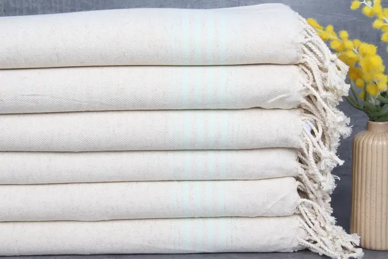 Turkish towels are characterized by their superior absorbency, ensuring they become more absorbent with each wash. Composed of 100% organic Turkish cotton, these towels weigh 104 grams and are available in a natural dye, with a standard deviation in size tolerance of 1-2.5 cm. Ensuring durability, they measure 18x36 inches or 45x90 centimeters.