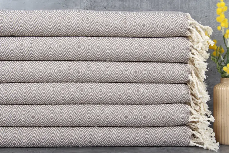 Turkish towels are characterized by their composition of 100% organic Turkish cotton, resulting in exceptional absorbency. Each towel weighs 90 grams and measures 18x36 inches or 45x90 centimeters, ensuring a durable hand-weaving process with tolerances of 1-2.5cm. Embroidery customization options are available for personalized gifts, and the towels are pre-shrunk, enhancing their longevity.