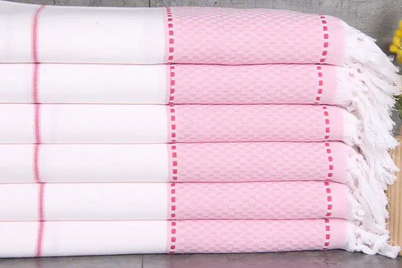 Turkish towels are renowned for their high-quality organic cotton composition, which ensures superior absorbency. The towels, measuring 71x40 inches or 180x100 centimeters, exhibit a weight of 300 grams, showcasing their substantial and durable nature. Hand-woven with precision, these towels have tolerances of 1-2.5cm due to their artisanal production.
