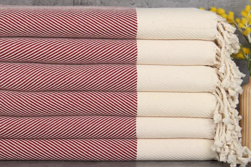Organic Turkish cotton towels, ensuring high absorbency and durability. The towels, weighing 430 grams, measure 40x71 inches or 100x180 centimeters. Hand-weaving results in tolerances of 1-2.5 cm.