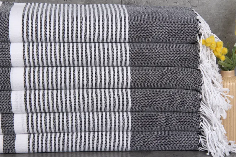 Composed of 100% organic Turkish cotton, these towels and blankets ensure high absorbency and durability. Characterized by natural dyes, they are hand-woven with attention to detail, resulting in towels and blankets that are pre-shrunk and ready for use. Each piece measures 40x71 inches or 100x180 centimeters, with a weight of 280 grams. Variations in hand-weaving can result in tolerances of 1-2.5 cm.