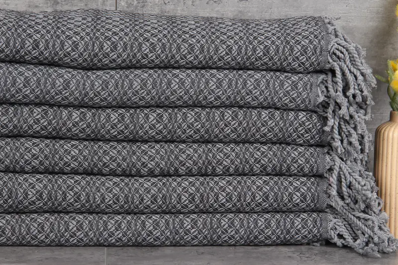 Turkish towels are characterized by their %100 organic Turkish cotton composition, ensuring high absorbency and durability. Resulting in natural dyeing, these towels weigh 450 grams and possess a size of 38x71 inches (95x180 centimeters). Tolerating minor variations of 1-2.5 cm due to hand-weaving, their fibers absorb more water with each wash, enhancing absorbency over time.