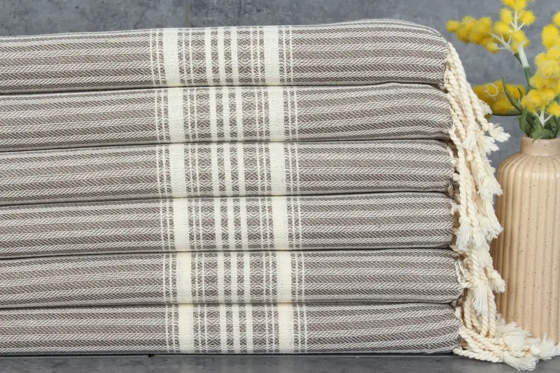 Ensuring product quality, the Turkish towels are characterized by 100% organic Turkish cotton, naturally dyed in various colors. Featuring dimensions of 18x40 inches or 45x100 centimeters, with a weight of 90 grams per square meter, they are hand-woven with tolerances of 1-2.5 centimeters. Resulting in pre-shrunk status, the towels are designed for easy maintenance, requiring initial separate washing for 2-3 cycles before being washed together.