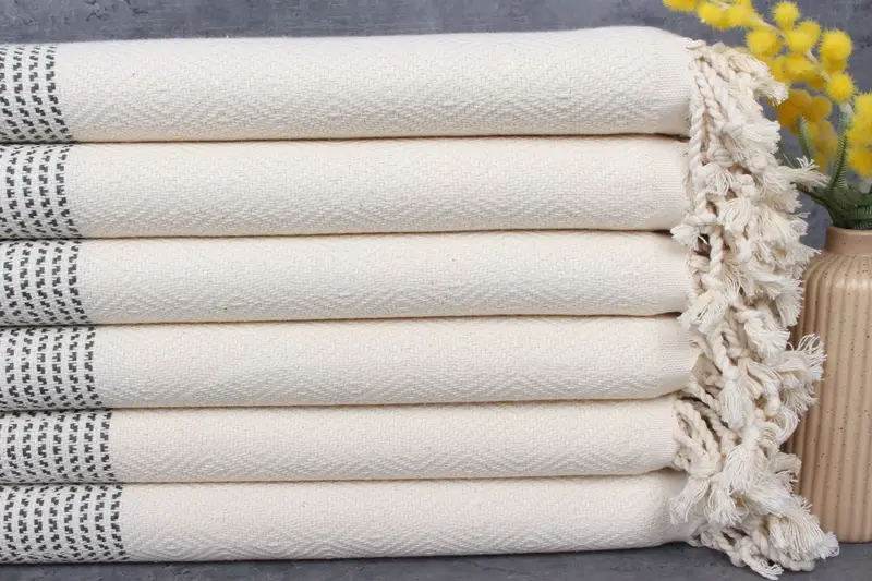 Characterized by 100% organic Turkish cotton, these towels and blankets are naturally dyed and exhibit enhanced absorbency with each wash, ensuring optimal performance. Each piece, weighing 450 grams, measures 40x71 inches or 100x180 centimeters, with slight hand-weaving variances of 1-2.5 cm. This high-quality fiber composition and precise dimensions guarantee durability and comfort.