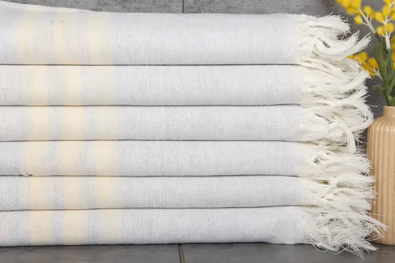 Turkish towels are characterized by their fiber composition, consisting of 100% organic Turkish cotton, which results in superior absorbency. Each towel is woven on hand looms, weighing 216 grams, and measures 40x67 inches or 100x170 centimeters, with a tolerance of 1-2.5 centimeters in custom sizes. Ensuring customization, personalized orders include embroidery that adds two extra days to the shipping process. Towels are pre-shrunk and shipped within the same day of order, with free shipping for orders over $35 USD. International shipping rang...