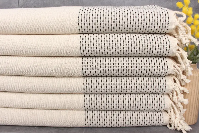 Turkish towels are renowned for their superior quality, characterized by their 100% organic Turkish cotton composition, which ensures high absorbency and durability. Weighing at 120 grams, these towels or throws measure 20x40 inches or 50x100 centimeters and are hand-woven with tolerances of 1-2.5 cm, ensuring precision in craftsmanship. They also feature pre-shrunk status, and customization through embroidery is available, adding 2 days to the shipping time. Orders exceeding 35 USD receive free shipping, and return/exchange policies are outlin...