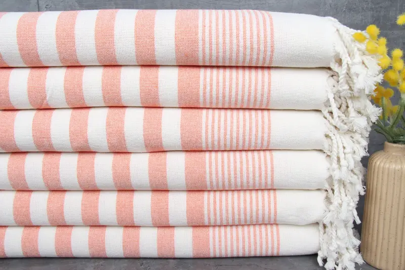 Crafted from 100% organic Turkish cotton, this Peshtemal towel, characterized by its natural dyed hues, ensures an eco-friendly and hypoallergenic option for various uses. Weighing 410 grams and available in a size of 40x67 inches (100x170 centimeters), it provides a substantial hand-weaving tolerance of 1-2.5cm. The towel exhibits high absorbency, with its cotton fibers becoming progressively more absorbent after each wash.