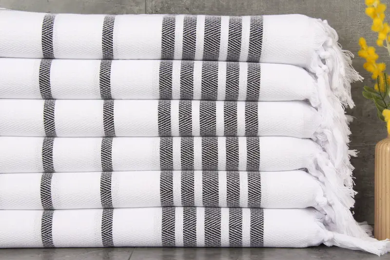 The Turkish towels are characterized by their composition of 100% organic Turkish cotton, ensuring hypoallergenic properties and enhanced absorbency. These towels, sized at 24x36 inches (60x90 centimeters) and weighing 120 grams, are hand-woven with tolerances of 1-2.5 cm, ensuring artisanal quality. Embroidery customization is available with an additional 2-day processing time. Pre-shrunk and ready for use, these towels can be shipped worldwide, with expedited delivery options available. Orders over 35 USD qualify for free shipping, with repla...