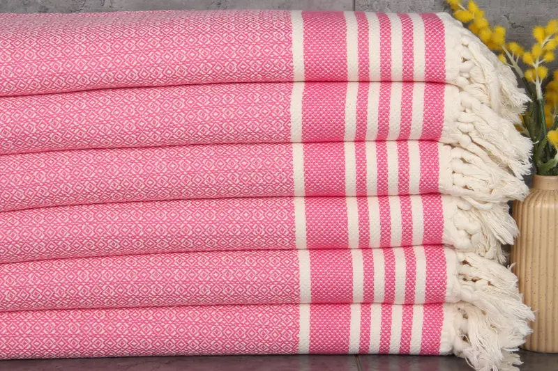 Turkish hand towels, characterized by their 100% organic cotton composition, exhibit natural dye colors, ensuring vibrant and long-lasting hues. These towels have a weight of 100 grams and are sized at 16x32 inches or 40x80 centimeters. Due to the hand-weaving process, there may be slight dimensional variances of 1-2.5 cm.