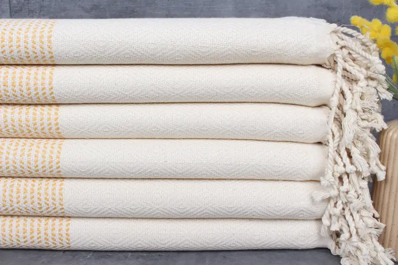 Turkish towels, characterized by their 100% organic Turkish cotton composition, ensure superior absorbency, becoming increasingly absorbent with each wash. These towels are meticulously woven, resulting in a weight of 450 grams per piece with dimensions of 40x71 inches, equivalent to 100x180 centimeters. Hand-weaving tolerances permit slight variances of up to 2.5 cm.