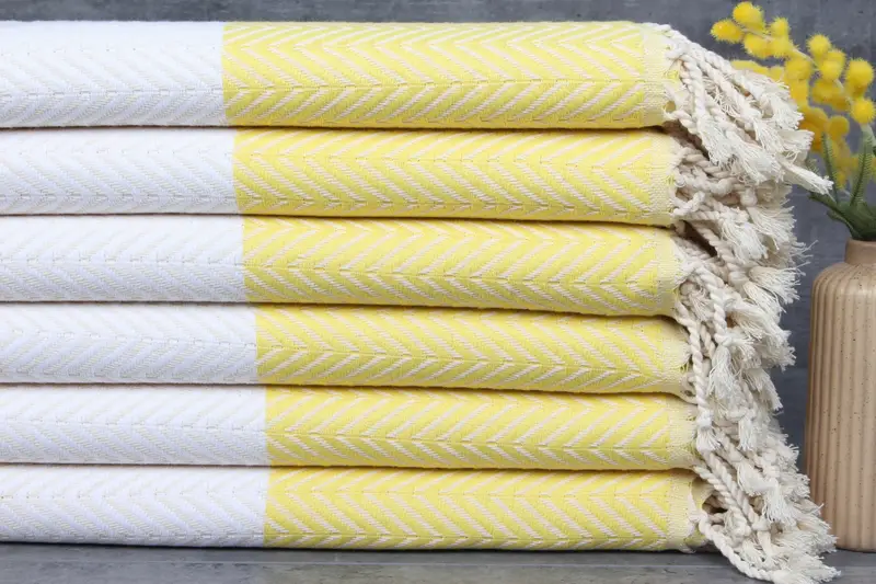 Each Turkish beach towel is crafted from 100% organic Turkish cotton, ensuring natural dyeing processes and superior absorbency. Characterized by its 40x71 inches (100x180 centimeters) dimensions and weighing 450 grams, the towel exhibits consistent quality with hand-weaving tolerances of 1-2.5cm. The cotton fibers notably absorb more water with each wash, resulting in increased absorbency over time.