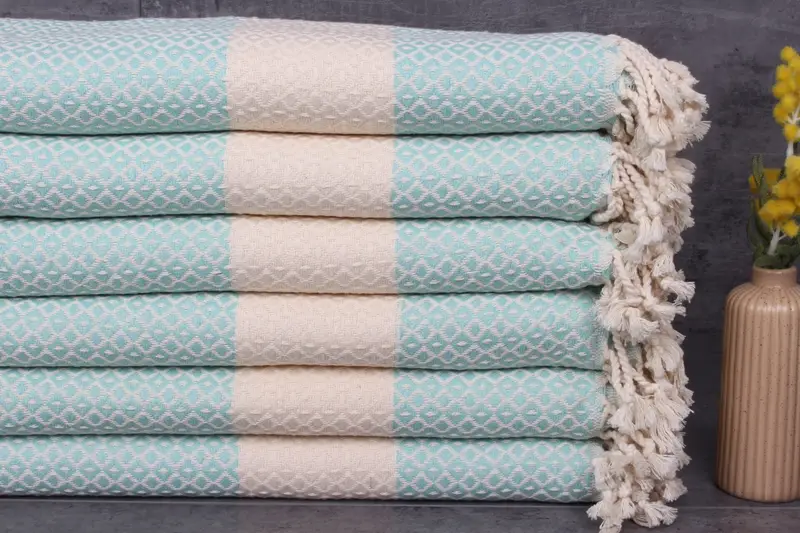 Turkish towels, renowned for their durability and luxurious feel, are characterized by their 100% organic Turkish cotton composition. These towels are naturally dyed, resulting in vibrant colors and enhancing their absorbency, which improves with each wash. Ensuring longevity, these towels are hand-loomed with meticulous care, adhering to a 1-2.5cm tolerance for consistency.